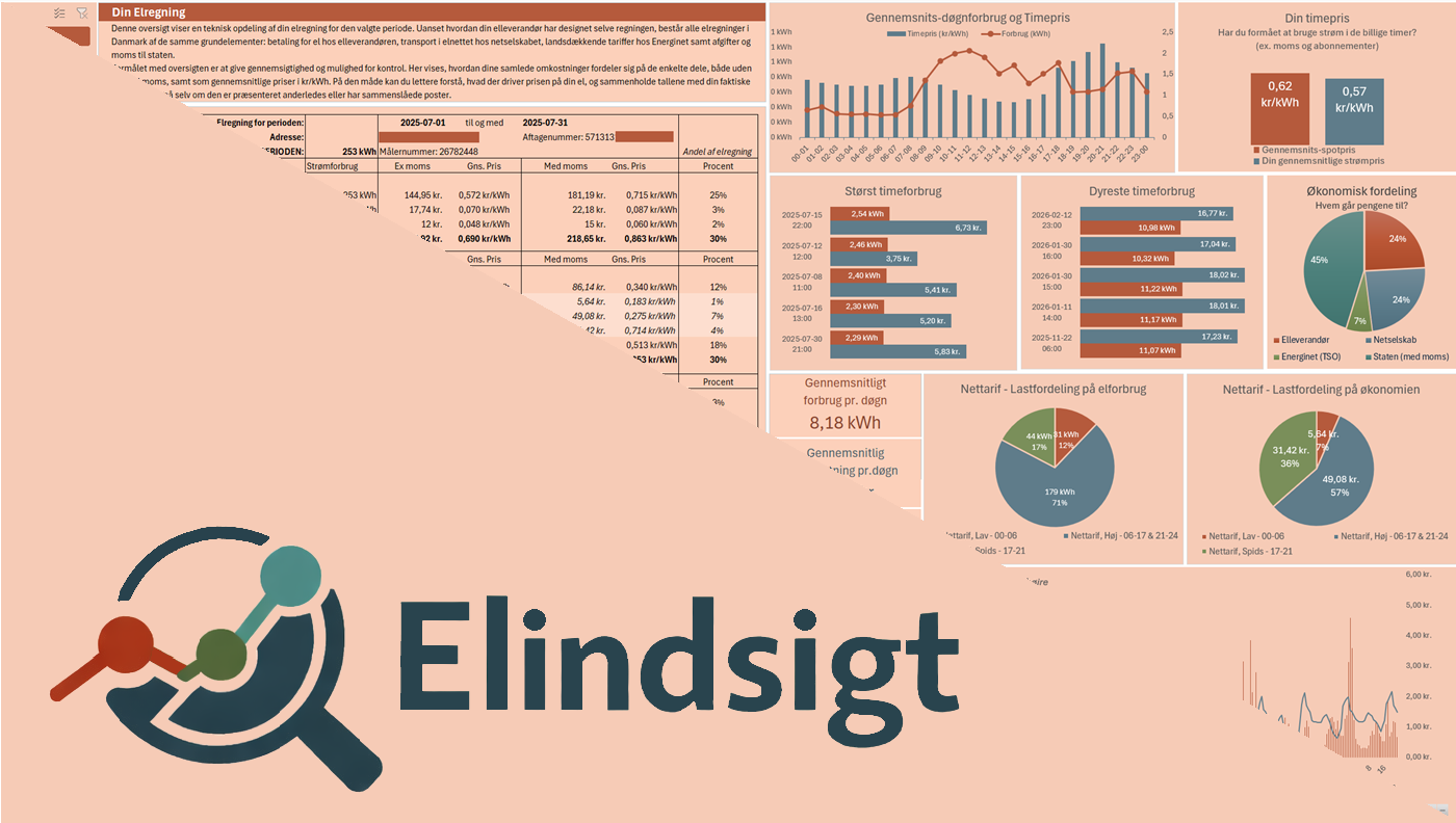 Her kan du genskabe hele din elregning og få fuldt overblik over, hvor dine penge går hen.