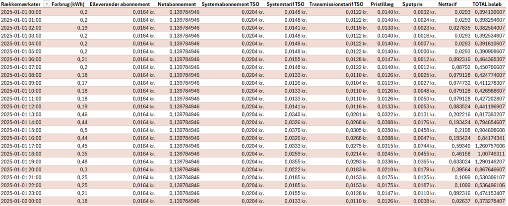 Så kan du se udregningen af din elregning for hver eneste time.