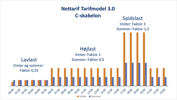 Tidligere betalte man en flad tarif til netselskabet, altså det samme beløb pr. kWh uanset hvornår på døgnet eller året den blev forbrugt. Så kom ”Tarifmodel 2”, og kort efter ”Tarifmodel 3”, hvor nettariffen følger et bestemt mønster, hvor døgnet er inddelt i lavlast, højlast og spidslast. Derudover er der sæsonforskel på vinter og sommerpriser.
